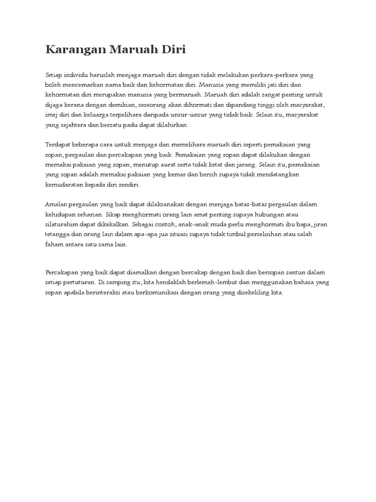 3 apakah contoh perbuatan yang akan menjatuhkan maruah diri. Karangan mengenai perihal diri perancangan pengajian dan kerjaya kehidupan saya bermula pada 14 mei 1996. Kita juga perlu memakai pakaian yang bersih.