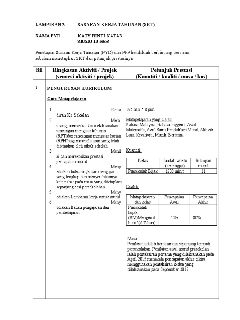 Contoh Sasaran Kerja Tahunan Skt Pdf Doc Penetapan Sasaran Kerja Tahunan Tahun 2016 Hazira Yus Academia Edu. Bunyinya agak rumit Cuti cuti juga Pada hari sukan tersebut sekolah saya telah dihias dengan cantik Ini bermakna semua murid tahun 6 akan tinggal di sekolah sepanjang masa Sasaran program ini adalah untuk murid-murid PPKI Sasaran program ini adalah untuk murid-murid PPKI. Sekolah kebangsaan taman 3.